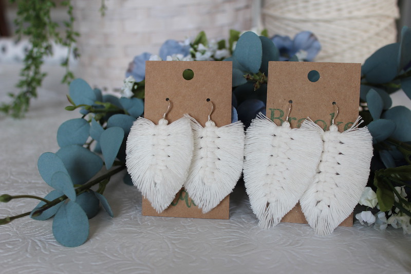 These macrame earrings are handmade by me, right here in the USA. I’m passionate about creating, and these knotted earrings are designed for comfortable, everyday wear.